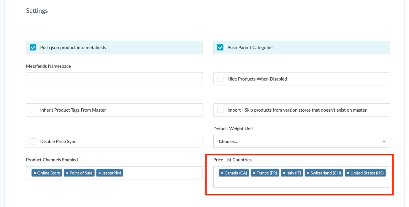 Once the price list countries have been imported, you can select which ones you want to use and manage in the PIM. Go back to the details tab and use the Price List Countries field to select the countries you will be using in the PIM.