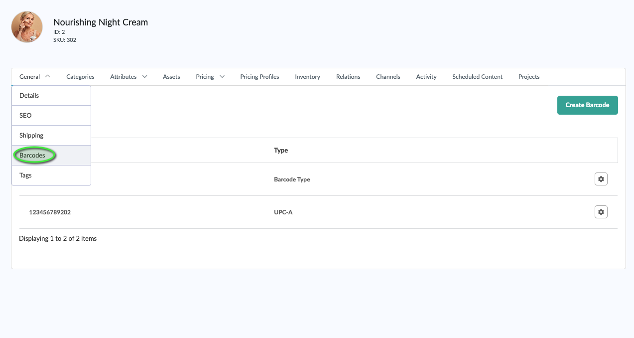 The barcodes tab on the product edit page stores barcode information attached to the product typically for the purposes of unique identification in the global marketplace.