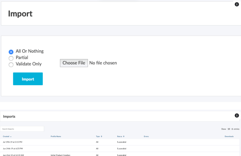 - Depending on the import type chosen you will receive up to 2 files along with messaging indicating if the file succeeded or had errors.